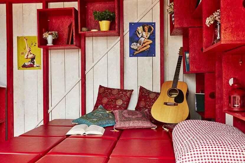 - Красный: интерьер спальни.