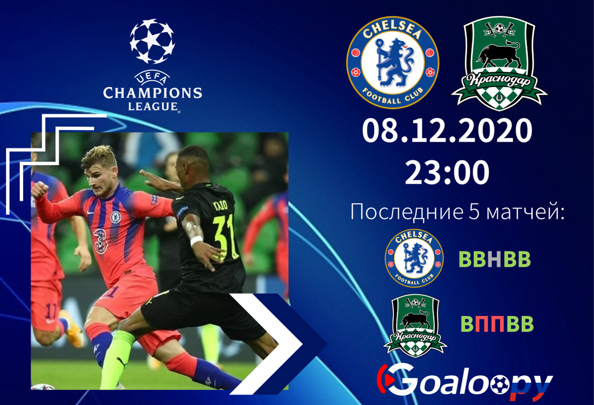 Время матча:8-12-2020 23:00 мск. Вторник Лига чемпионов - Челси vs Краснодар Прямая трансляция | Прогноз на матч | Коэффициенты на азиатскую фору|Составы и Статистика H2H ----------------------------------- 8 декабря в 23:00 по московскому времени в рамках матча шестого тура группового этапа Лиги чемпионов "Челси" в Лондоне примет "Краснодар". "Челси" досрочно обеспечил себе первое место в квартете благодаря уверенной победе над "Севильей", добытой в прошлом туре. Подопечные Фрэнка Лэмпарда одержали четыре победы, только в одной встрече разошлись миром и пропустили лишь один мяч – констатируем, что "синие" пролетели групповой этап на одном дыхании. Удастся на мажорной ноте ворваться в плей-офф? У "Краснодара" всё тоже сейчас неплохо: подопечные Мурада Мусаева в прошлом туре сломили сопротивление французского "Ренна" и обеспечили себе выход в Лигу Европы. Можно говорить, что два поражения от "Севильи" получились максимально обидными и можно было побороться за большее, но задача-минимум