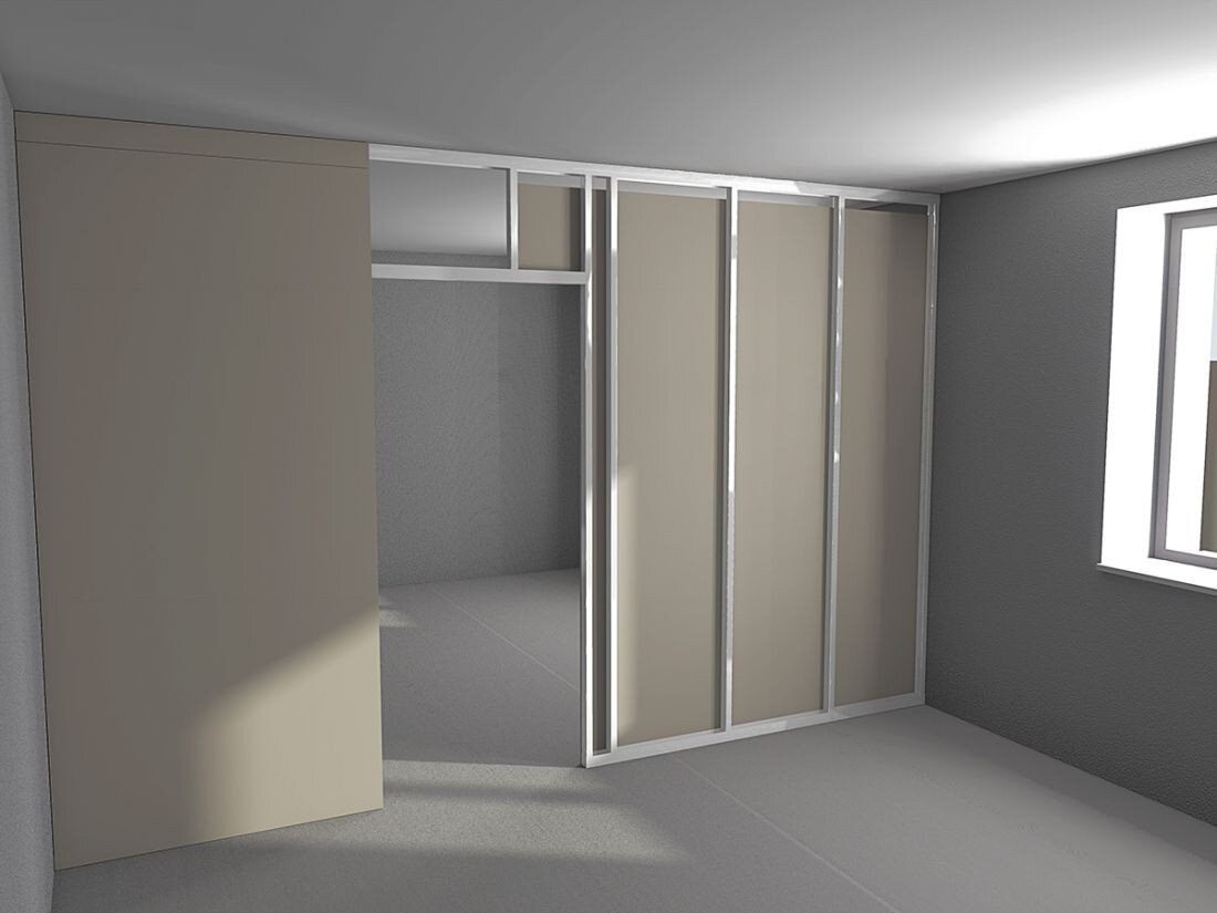 Лучший способ быстро и с малыми затратам времени и средств создать перегородку это воспользоваться гипсокартоном. С помощью гипсокартонных перегородок вы можете разделить пространство большой комнаты, создать неповторимый дизайн и придать особую индивидуальность помещению.