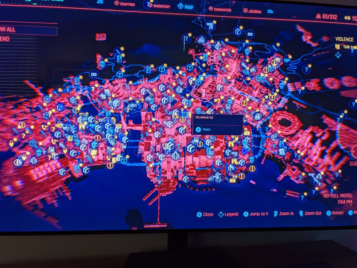Скриншот реальной карты в игре, предоставленный любезно Gadget Gang, не раскрывает никаких спойлеров как таковых, но он показывает, как много еще предстоит сделать в Cyberpunk 2077. Карта огромна, как и ожидалось, но чего не ожидалось, так это абсолютной плотности ночного города. Скринкап взят из раннего