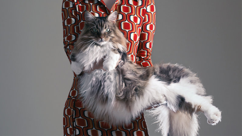 - Чтобы на фото кот выглядел максимально большим, расположите его морду ближе к объективу (вы на заднем плане) и вытяните питомца по всей длине.