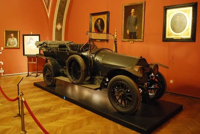 Итак, перед нами автомобиль Gräf und Stift 28/32PS 1910г.в. Чем он знаменит спросите вы? Тут всё просто, конкретно этот автомобиль очень тесно связан с началом Первой Мировой, в нем был убит эрцгерцог Фердинанд с супругой.