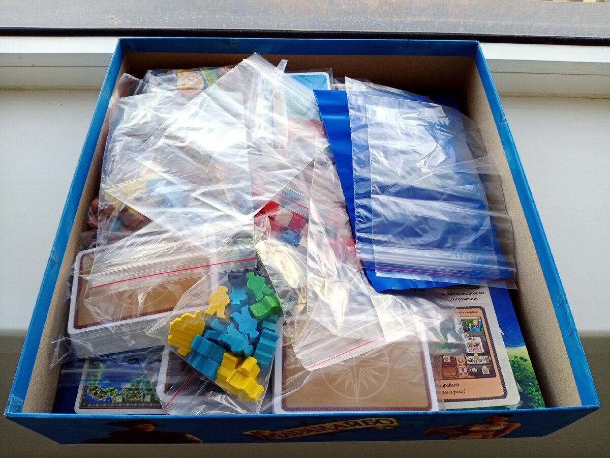 Игра лежала у меня достаточно давно, первая причина — я слегка боялся ее открывать. Несмотря на то, что обзоры пилю честные и у Hobby World претензий ко мне в 99% случаев нет, тут немного другая ситуация. Игруля стоит 5000 + ее купил не я сам себе, а прислали издатели. Было бы не очень красиво, если бы я опустил в *цензура* продукт за такую сумму, да? Не придется, к моему счастью. Честно: это не самый лучший вид досуга, что вы можете приобрести за озвученную цифру, однако внимание "Маракайбо" определенно заслужил. Для начала взгляните на начинку коробаса. Здесь нет картонной панели, что авторы любят класть в коробку, дабы создать видимость наполнения. Нутро практически полностью заполнено игровыми компонентами и пакетиками. Тонна их, у меня даже запасные остались. Качество компонентов на уровне — множество деревянных миплов, брусочков и прочих фигурок, порядка 200 карт и прочих запчастей из плотного картона. Запомните обилие начинки, это важно. Вот, а вторая причина простоя настолки — талмудище правил.