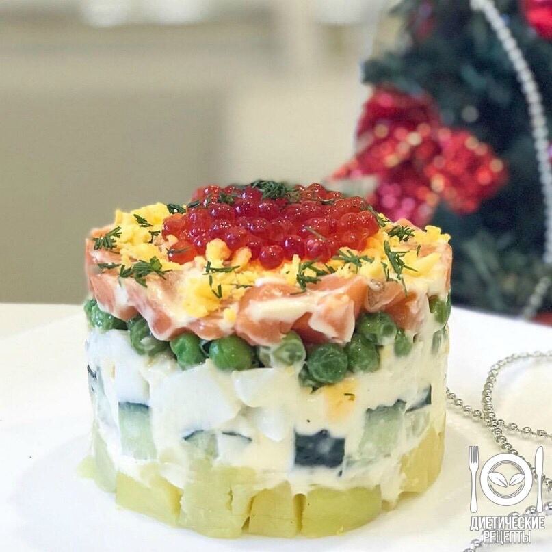 ▫️Все ингредиенты нарезаем и добавляем сметану, можно уложить все слоями! Украшаем икрой!
