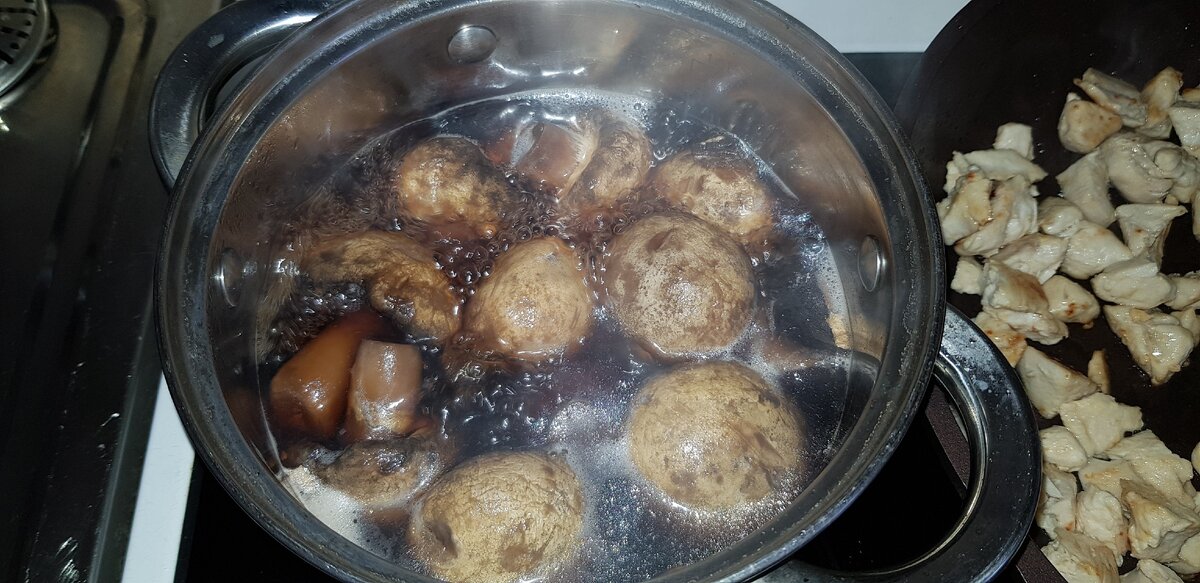 1. Отварить грибы (шампиньоны) около 20 минут.