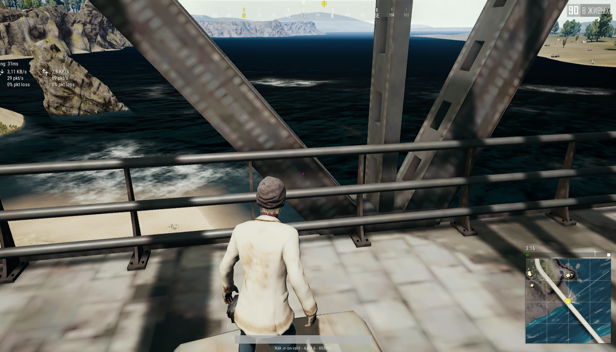 Данный способ позволит оставаться незамеченным на одном из самых видных мест карты Эрангель — на мосту. Прибегаем на любой из них, примерно на середине (недалеко от перил) ищем разбитую машину, которая стоит капотом к ограде: забираемся на нее и целимся на опорную балку (чтобы не перепрыгнуть и не свалиться вниз), заскакиваем на ограду. После аккуратно перемещаемся правее на опору, которая идет вверх: по ней можно подняться (при желании — даже на вертикальную перемычку). Как итог — никто никогда не смотрит на верхнюю часть моста: можно долгое время оставаться незамеченным.