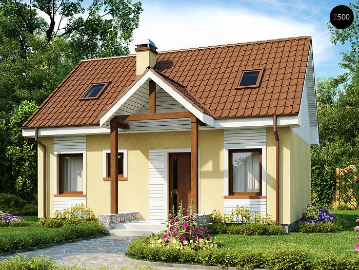 Проект Z32 — это компактный традиционный дом простой формы с двускатной крышей. Скромный и аккуратный экстерьер скрывает удобную, функциональную планировку интерьера. Благодаря своим компактным габаритам и отсутствию окон в боковых стенах дом можно разместить небольшом участке 15х15 м.