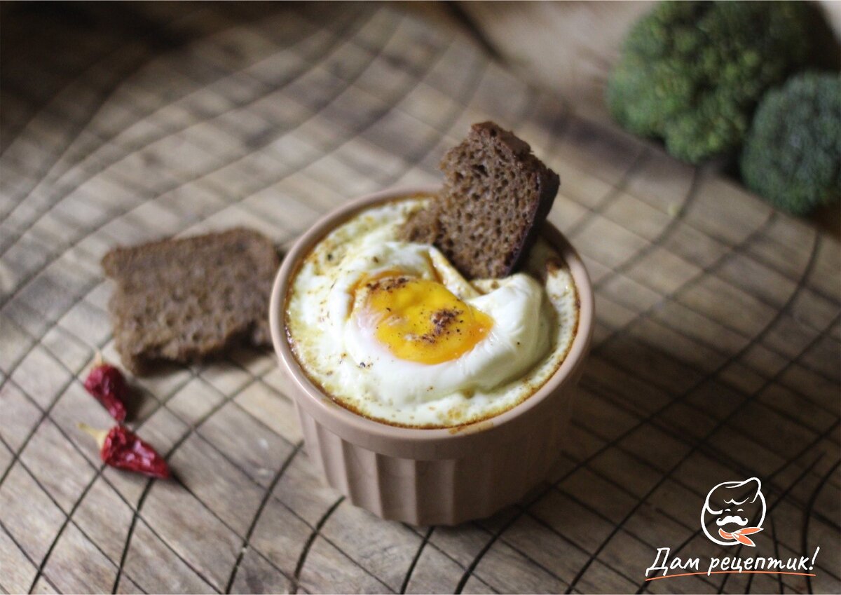 Вбить одно куриное яйцо поверх соуса. Поперчить и посолить яйцо. Отправить блюдо в духовку и запекать до желаемой готовности яичного желтка. На это уйдет от трех до пяти минут.