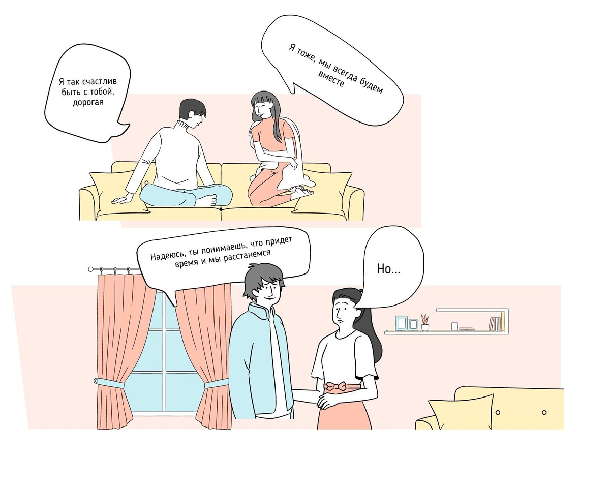 2. После осознания того, что вы не будете вместе, расставание проходит тяжело, так как чувства остались у обоих. Отношения кончаются из-за вынужденных обстоятельств.
