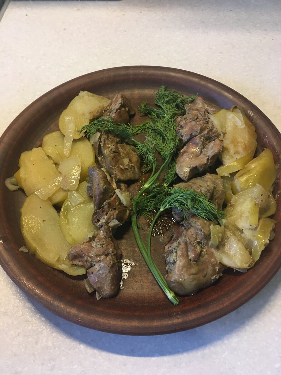 Очень часто встречаю этот рецепт куриной печени с пометкой "в банке" и постоянно думаю - отчего же не приготовить в глиняном горшочке? Может, в банке вкуснее?