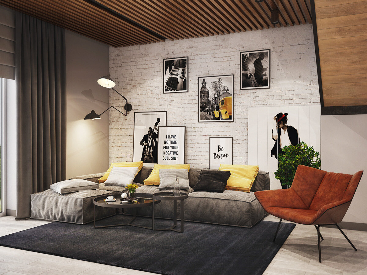 Гранж сложно воплотить в интерьере небольших комнат. Для этого стиля нужны большие пространства и много света. Желательно, чтобы и потолки в помещении были высокими. Создать нужную обстановку помогут панорамные или большие окна. От их украшения лучше отказаться или свести декор к минимуму. В комнате должно быть светло днем. В дополнение к естественному дневному освещению позаботьтесь об искусственном. Светильники, создающие теплый свет, необходимы по вечерам.