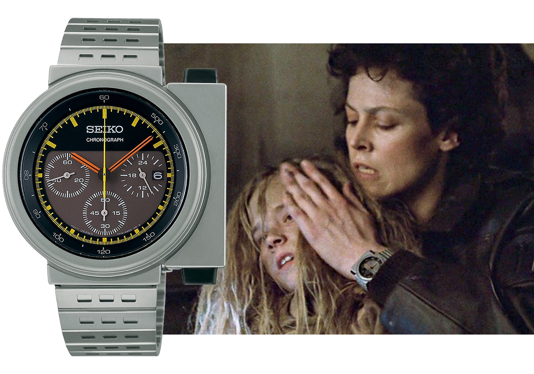 В простоте дизайна часов капитана Эллен Рипли есть что-то очаровательное. Легендарный автомобильный дизайнер, Джоретто Джуджаро взял существующий хронограф Seiko, добавил с правой стороны полосу и разместил по кругу несколько дополнительных кнопок. Вуа-ля: перед нами часы, которые не потеряют своей актуальности в 2179г.
