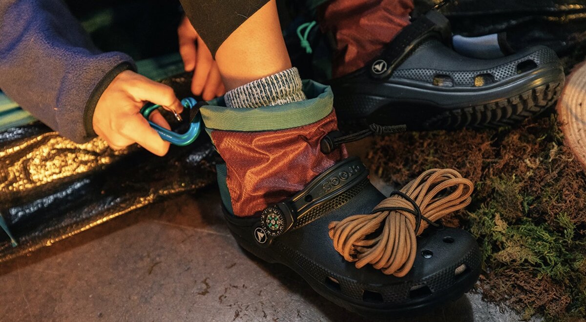 Сабо с компасом, верёвками, зажимами, фонариком и маленьким кармашком. Плюс ко всему с высоким верхом. Единственный минус — на официальном сайте всё распродано, получится найти только на перепродаже в несколько раз дороже. Но пропустить такую замечательную пару я не мог.