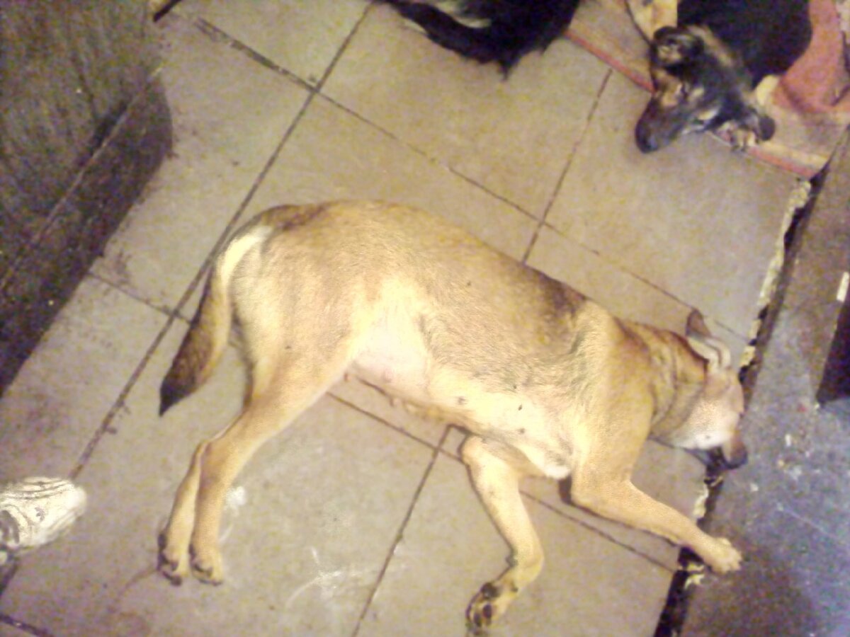 Собаня родила прямо на земле. Щены были в крови, сама мамочка тоже. Забрала женщина конечно же всех. Маманя подарила ещё двоих хвостов. К сожалению, к двум ночи собаня умерла от потери крови. Не получилось нам попасть в круглосуточную клинику, то телефон не отвечал, то врача не было, в итоге ни одно такси не приехало - комендантский час.