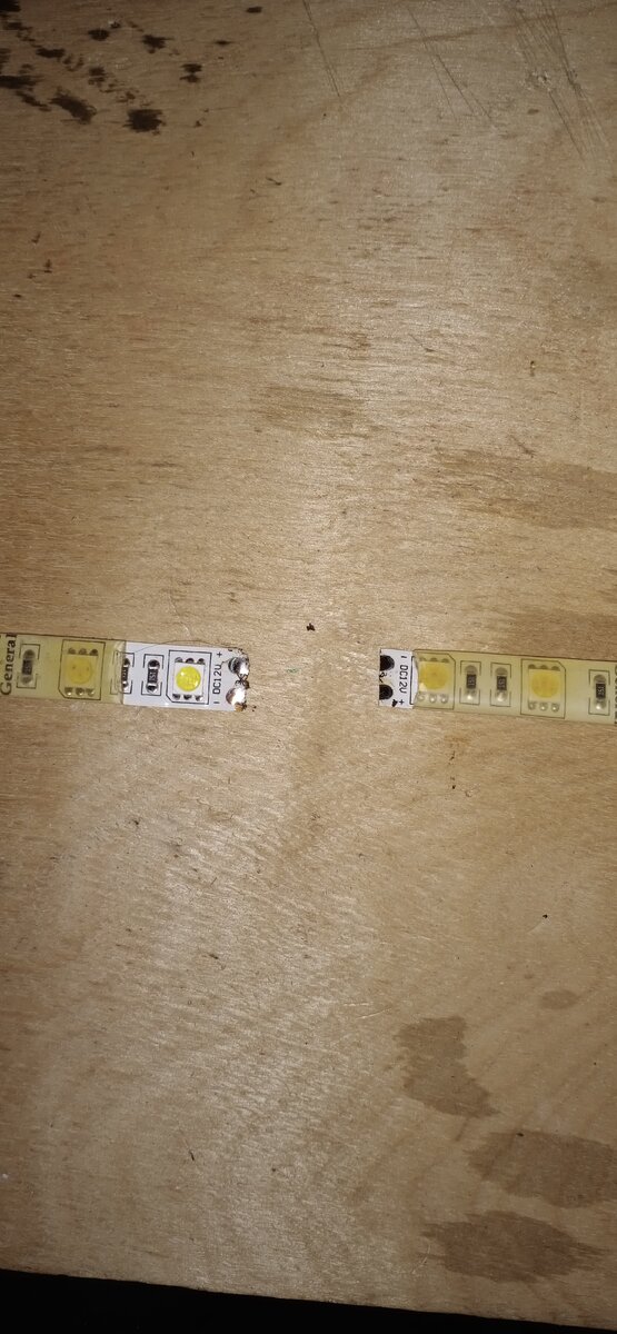 Почему-то когда приложил два конца ленты, то плюс и минус оказались в противоположных сторонах. Как это видно на фото.