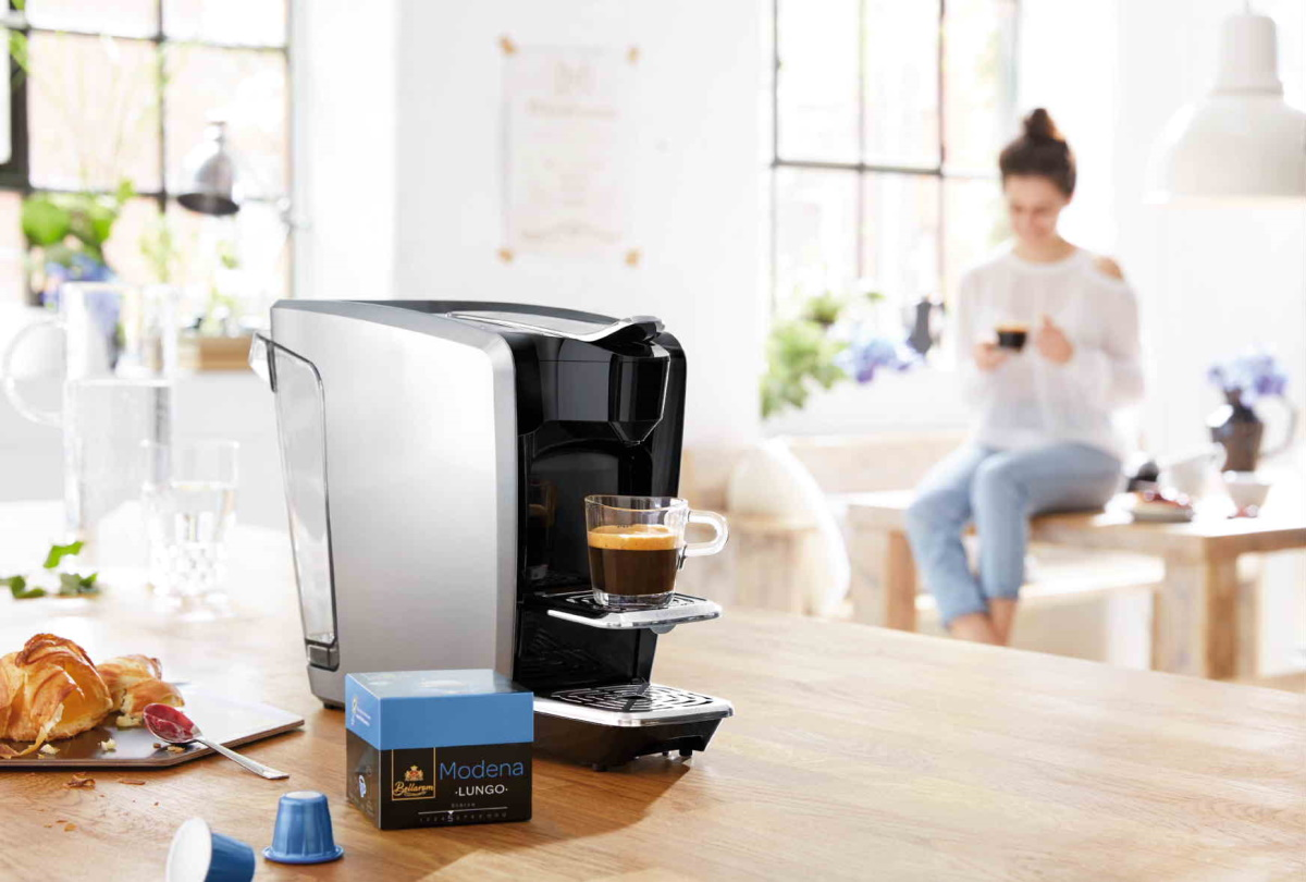 Встроенный проточный водонагреватель мощностью 1300 Вт показывает быструю готовность к работе, не нуждаясь в длительном прогреве. А функция «умного» заваривания SmartStart позволяет еще больше сократить время на приготовление любимого напитка, запустив программу нажатием пальца. Машина оснащена регулируемой по высоте подставкой под чашки разных размеров, которую при необходимости можно снять совсем. Функция паровой очистки после каждого приготовления кофе и программа автоматической декальцинации с использованием сервисного Т-диска делают уход за устройством максимально простым. Кроме данной модели бирюзового цвета покупатели могут приобрести приборы в красном, белом и черном корпусе. Единственным разочарованием модели стал небольшой гарантийный срок, составляющий всего 1 год.