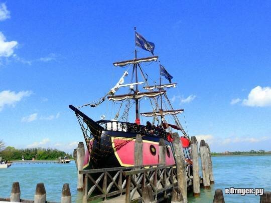 Парк развлечений «Веселый Роджер» – это уникальный аттракцион на курорте Лидо ди Езоло, представляющий собой огромный корабль-галеон времен Венецианской Республики. Кроме того, это еще и отличное место для проведения частных вечеринок, свадебных торжеств и бизнес-мероприятий. Команда «Веселого Роджера», встречающая гостей в костюмах далеких 16-17-го веков,