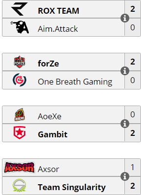 Четвертьфинал прошел без каких либо неожиданностей, все фавориты закрыли свои встречи 2-0 без проблем, лишь Axsor смогли дать бой Singularity, и даже смогли закрыть карту.