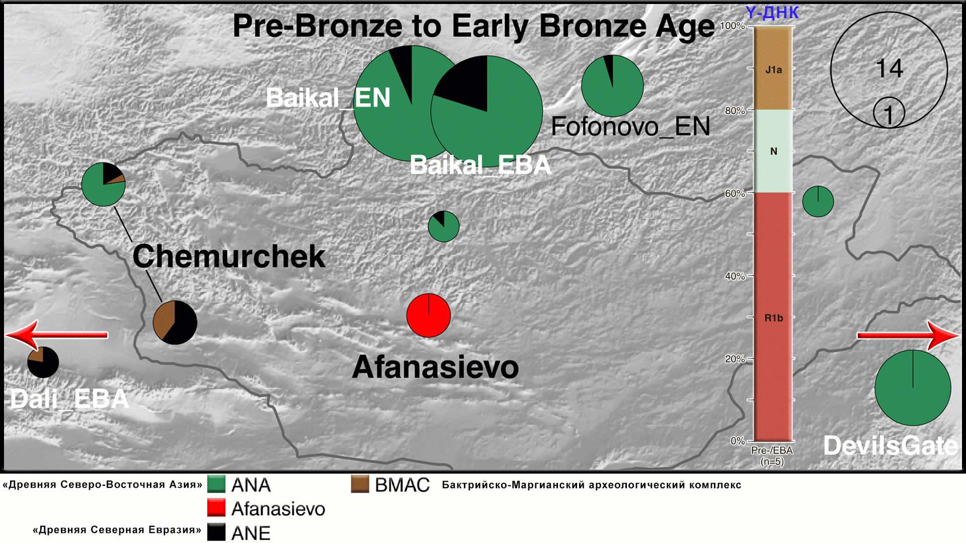 Как для неолита, так и для раннего бронзового века у скотоводов, и охотников собирателей Байкала, а также северных частей Монголии, генетический профиль состоял из смеси компонентов близким к древним северо-восточным азиатам (ANA) и древним североевразийцам (ANE). И этот профиль сохранялся на протяжении почти 3-х тысячелетий. А в позднем бронзовом веке, выделяется уже три отдельных, географически структурированных компонента: