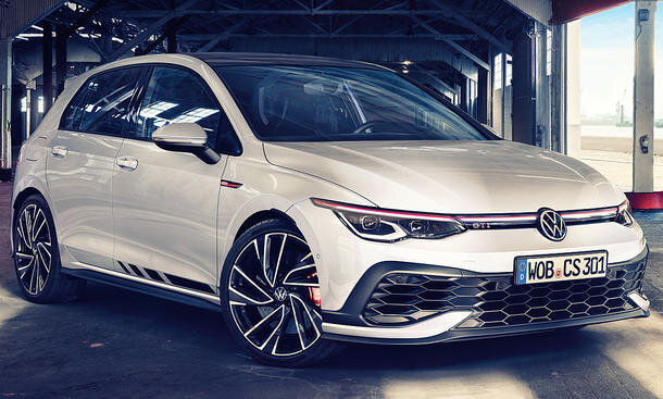 VW Golf GTI Clubsport (2021 г.) - при цене 40 225 евро (по состоянию на декабрь 2020 г.) он примерно на 8 000 евро дешевле, чем Golf R. В частности, передний бампер не только ярче и спортивнее по сравнению со «стандартным» GTI, он также должен увеличить прижимную силу. Дизайнеры обошлись без скандальных пятиточечных противотуманных фар. Другая отличительная черта CS: большие колеса, безошибочный