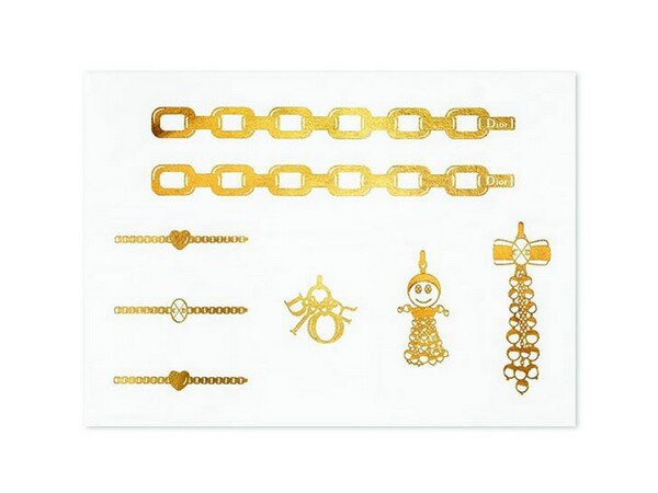 Как известно, фамилия основателя известного на весь мир торгового дома Dior созвучна французскому слову d'or, что в переводе означает «золотой». Вероятно, во многом именно поэтому изделия данной марки ассоциируются с роскошью, золотом, драгоценностями. А недавно под этой маркой была выпущена коллекция временных татуировок Grand Bal из настоящего золота, которые призваны заменить собой самые настоящие драгоценности.