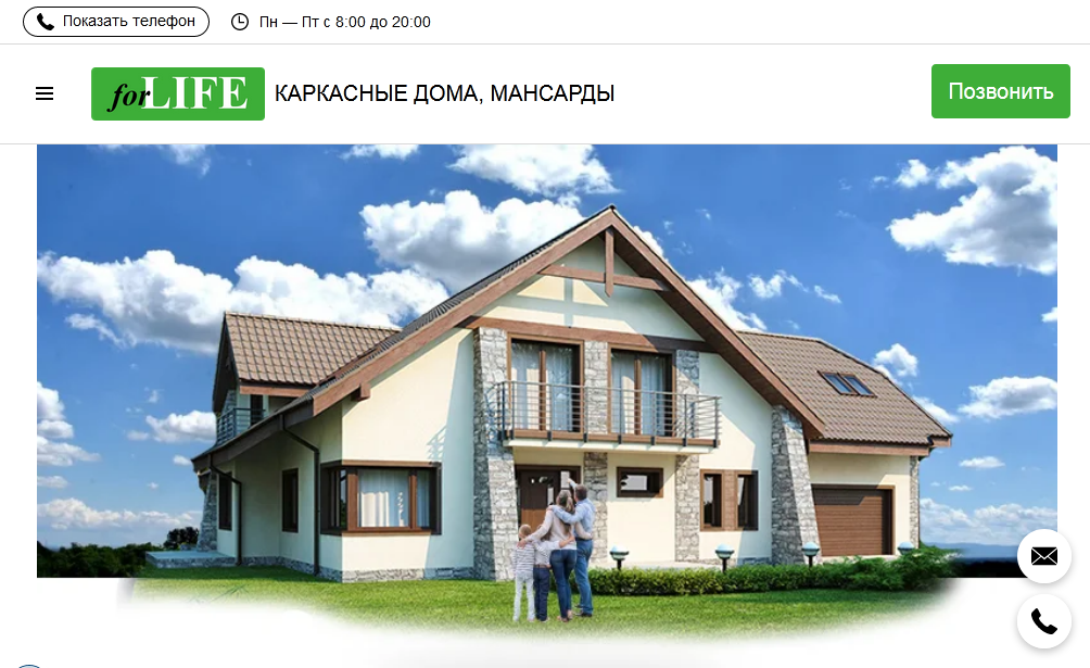 На картинке представлен фрагмент (обложка) сделанного нашей командой на базе конструктора Яндекс Директа турбо сайта, что освещает вопросы строительства каркасных домов.