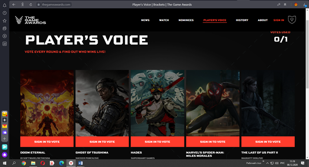 Пользовательского голосования за игру года на The Game Awards 2020 завершилось.