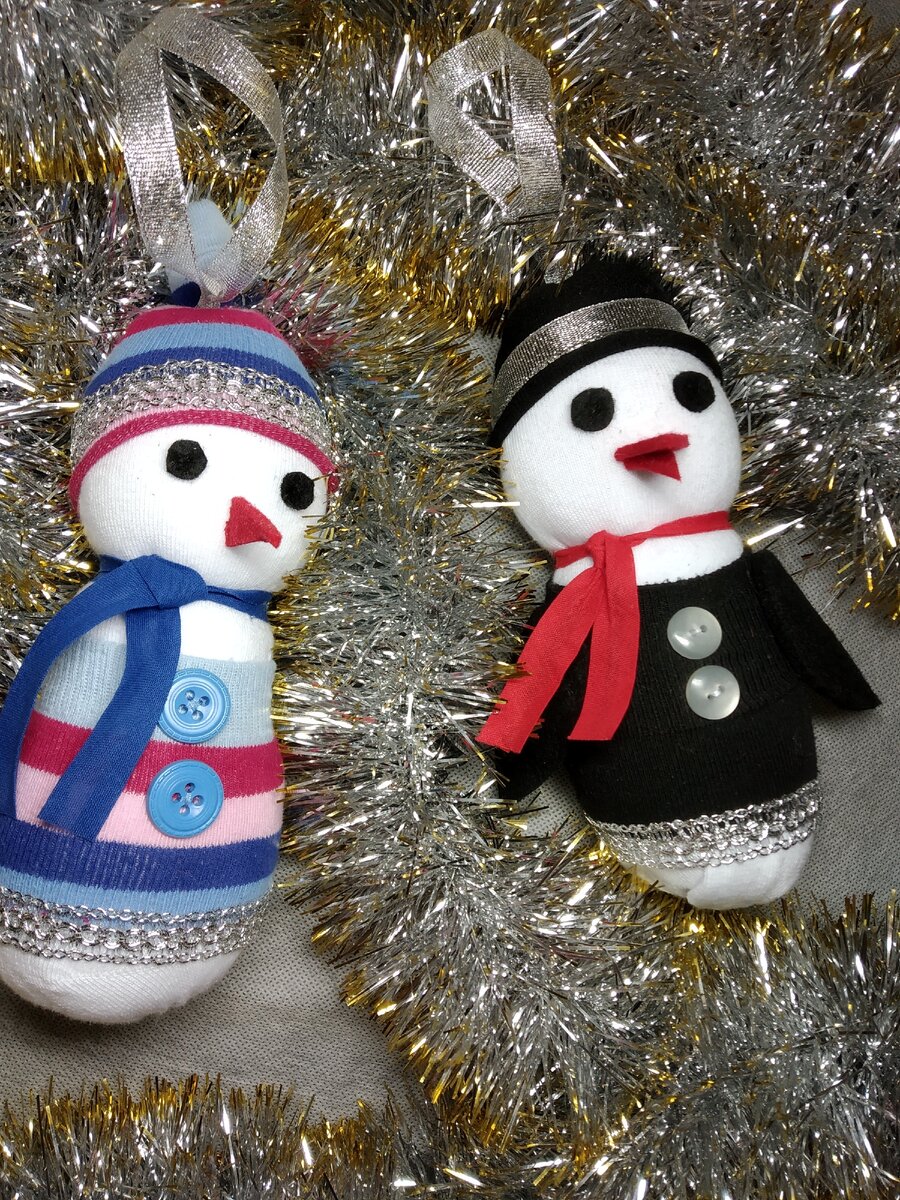 5. На заготовку из белого носка надеть в виде шапочки и кофточки. Края можно чуть закатать.