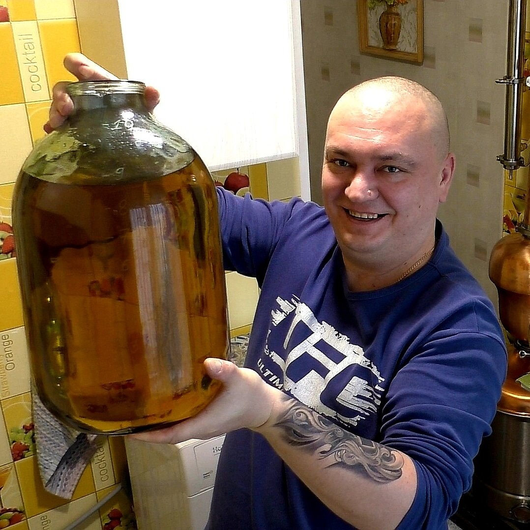 Друзья мои давайте пройдемся по постановке браги: Я использовал 10л глюкозно-фруктозного сиропа плюс 5 л концентрированного виноградного сока, 30 л воды, одна пачка Turbo дрожжей. От постановки браги до перегона прошло 10 дней. Самогонный аппарат для режима потстилл собрал в конфигурации аламбика 21го века,на 50ти литровый куб Люкссталь установил медную крышку с выходом под кламп 4,далее