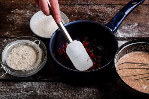 блинчики. Выложить клюкву на сухую сковородку и