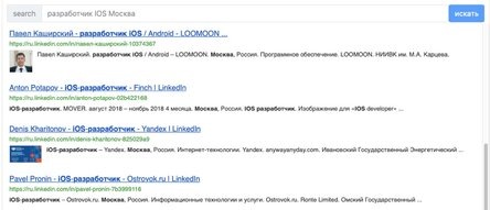 Начнем поиск с самой известной в мире социальной деловой сети – linkedin. Для этого в поисковую строку вносим должность и город, например рассмотрим : должность город. И выбираем социальную сеть linkedin.com