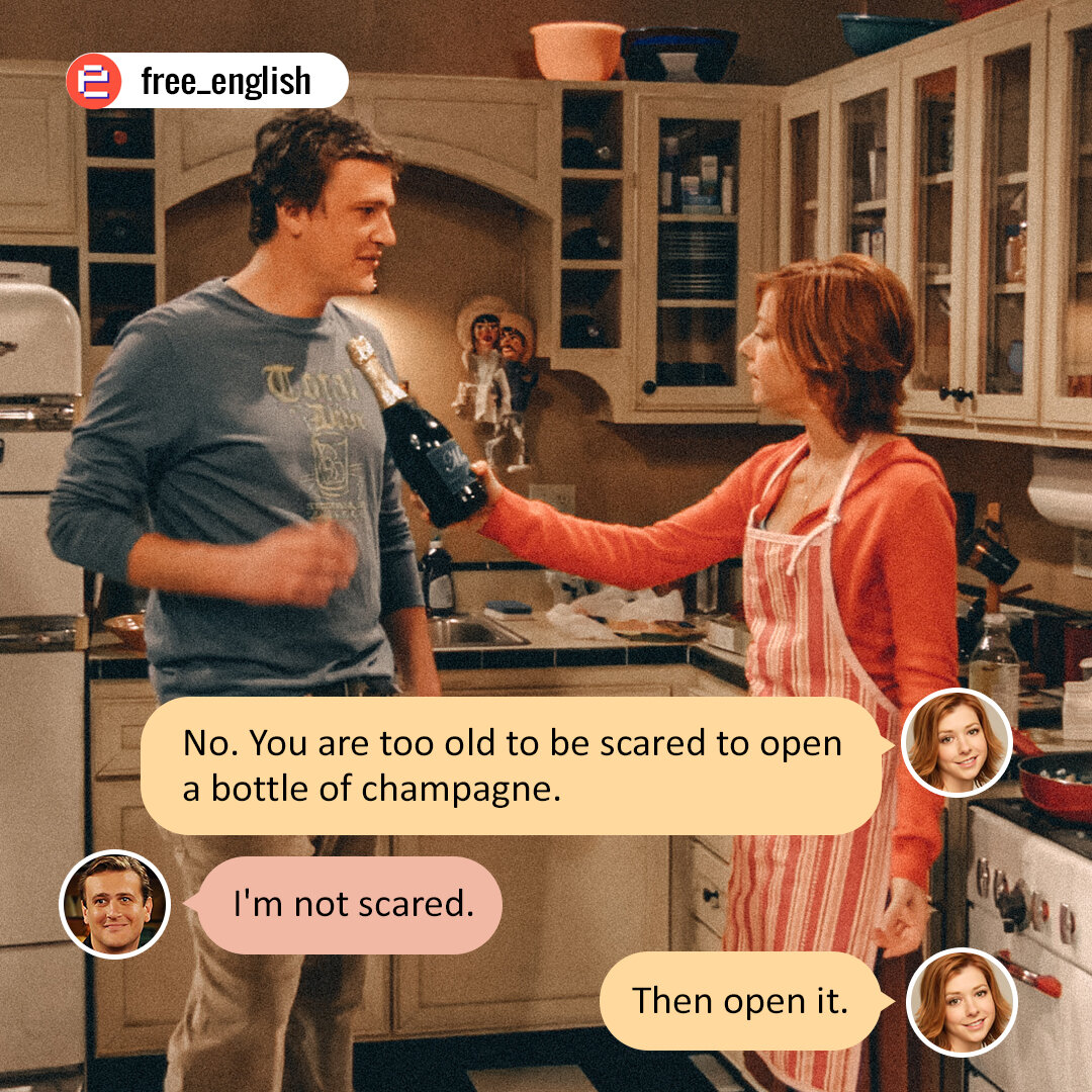 - Нет. Ты уже слишком взрослый, чтобы боятся открыть бутылку шампанского.- Я не боюсь.- Тогда открой.