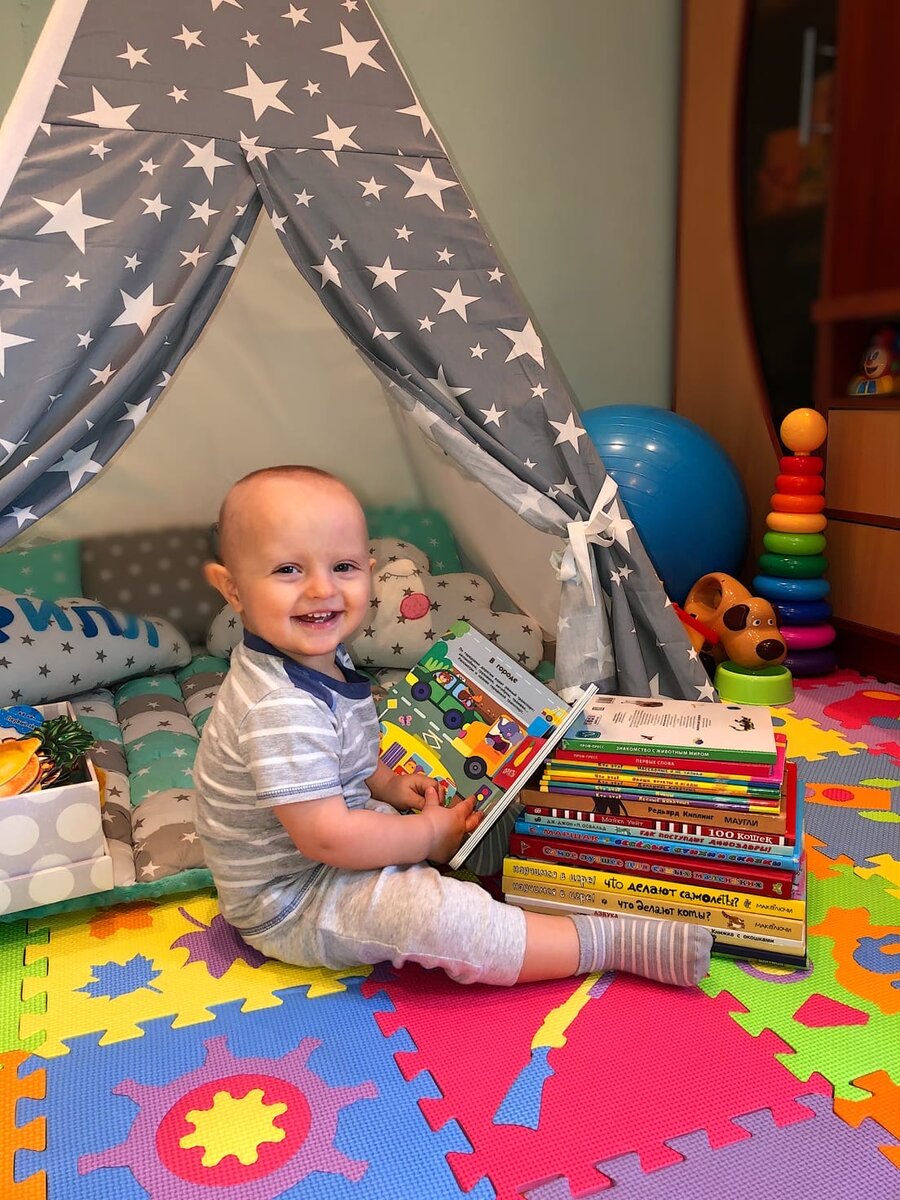 Каждый раз, когда в доме появляется новая книга , Кирилл превращается во взрослого парнишку, берет за руку, ведёт в вигвам ( это наше место для чтения) садится поудобнее, сначала гладит книжечку , только потом ее начинает рассматривать, показывать пальчиком на иллюстрации и что-то под нос себе бормотать🙋🏼💁🏼Видя , что у малыша есть неподдельный интерес, меня так и ведут ноги в книжный магазин, так и тянутся руки к новой избраннице .