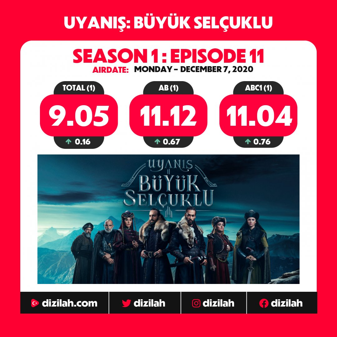 Лидером понедельника стал сериал «Пробуждение: Великие Сельджуки». Они укрепили свои позиции, сериал вырос во всех трех важных категориях. Исторические сериалы всегда хорошо воспринимались зрителями в Турции и получали высокие рейтинги. Если все продолжится в таком же духе, то сериал станет очередным мировым лидером от турецкого производителя.