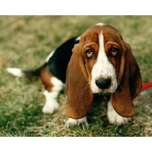 Первое место по праву принадлежит бассет хаунду. Собака с грустными глазами и длинными ушами.