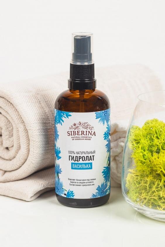 1. Гидролат василька. Он прекрасно увлажняет, успокаивает, освежает и тонизирует кожу любого типа и в любом возрасте. Рекомендуется к применению для самой чувствительной кожи вокруг глаз и век, снимает отечность, разглаживает мелкие морщины в области глаз.