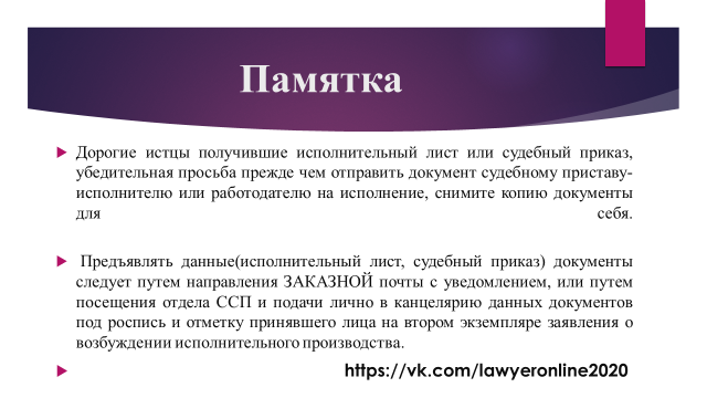 Действия при подаче исполнительного документа