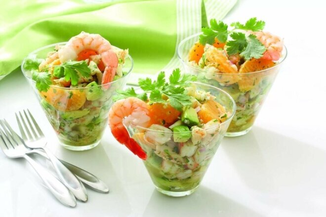 1) Приготовить соус из мандаринового сока, майонеза и специй.