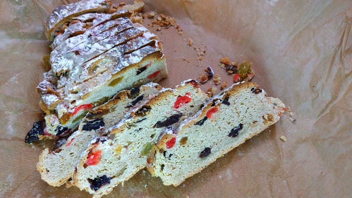 Штоллен - это традиционный немецкий рождественский кекс. Для него замешивают тяжёлое дрожжевое тесто, добавляют пряности и большое количество изюма с цукатами. Как правило, выпекают его заранее. Этот кекс должен вылежаться 2-3 недели в прохладном месте. Процесс, конечно, занимает время, но он не так сложен. А результат вас однозначно порадует.