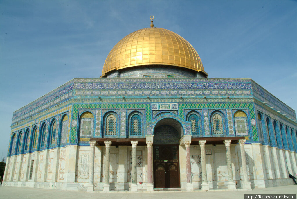 Безусловно, первое, что притягивает на Храмовой горе, это мечеть Купол Скалы. Кроме всего прочего, это очень красивый памятник архитектуры, гармонично сочетающий в себе золотой купол и голубой мозаичный орнамент.
