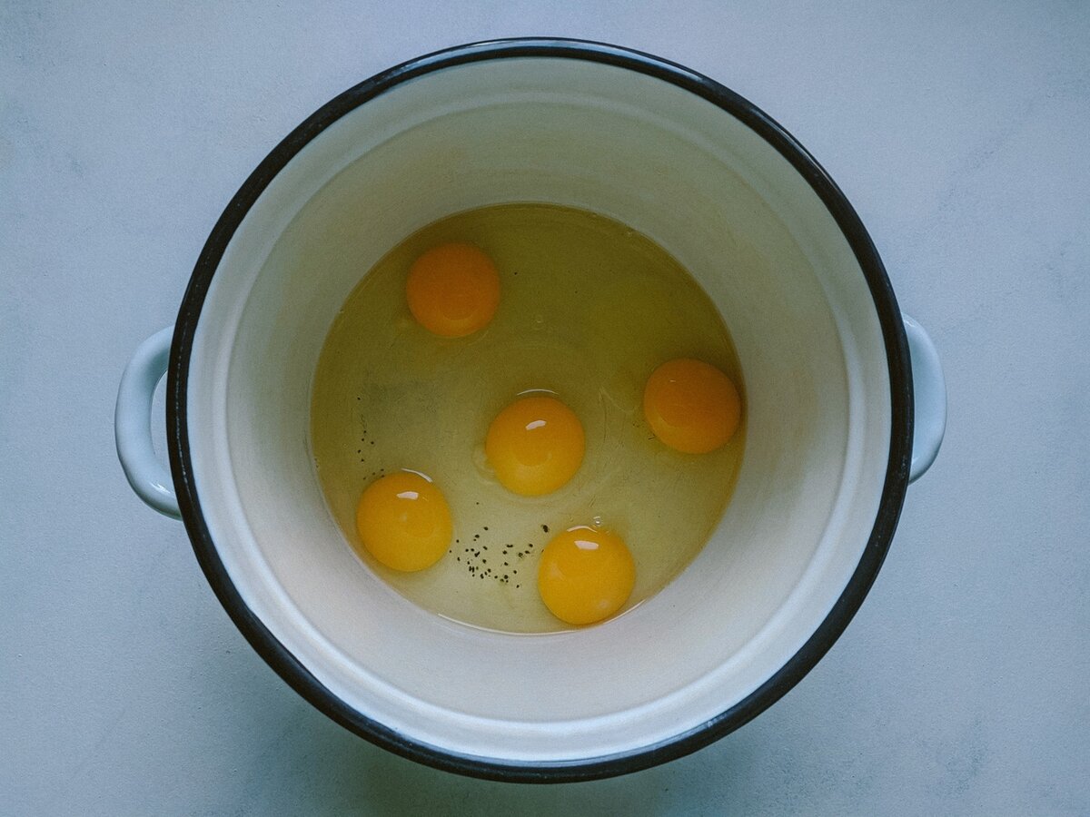1. В сухую металлическую кастрюлю разбить 5 яиц. Постепенно добавляя сахар, взбивать миксером на максимальной скорости около 7-10 минут до пышной белой пены - это самое основное!