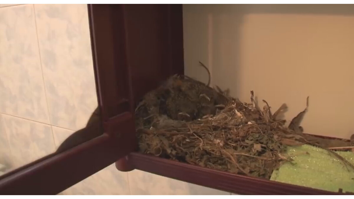 Птичка решила сделать себе гнездо в туалете этого дома и родить там птенцов. Как-то в один прекрасный день хозяйка этого дома пошла в туалет и услышала что в туалете
