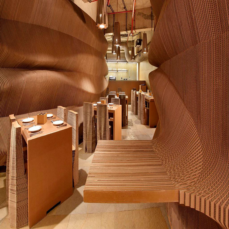 Индия — страна чудес. Именно там, в одном из самых крупных городов этой удивительной страны, в Мумбаи, появилось необычное кафе с говорящим названием Cardboard, что в переводе на русский означает картон. Эксклюзивность заведения состоит в том, что вся мебель и интерьер сконструированы из вторичного гофрокартона.