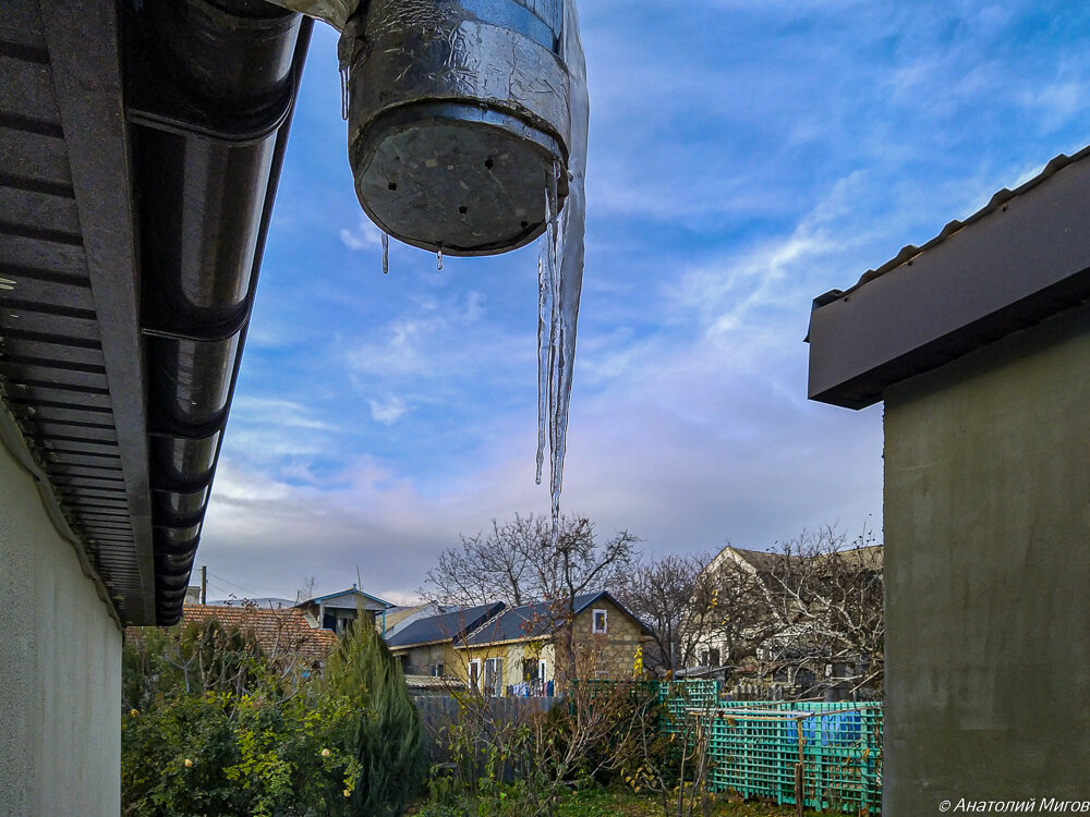 В нашем Старом Крыму приморозило. Трое суток и днем, и ночью мы жили в облаке и минусовой температуре. Вчера ночью опускалось до -5. На крыше наморозило сосульки. Завтра ожидаем потепления, а солнце выглянуло уже сегодня. И жить сразу стало веселей.