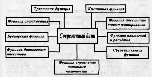 Современный банк - это финансовый институт, предлагающий широкий спектр услуг, относящихся прежде всего к кредитам, сбережениям и платежам, и выполняющий многообразные финансовые услуги в отношении любого экономического субъекта (рис. 1 ). Объем этих услуг достаточно большой. Так, в США насчитывается до 155 видов банковских услуг, а в Японии -174.