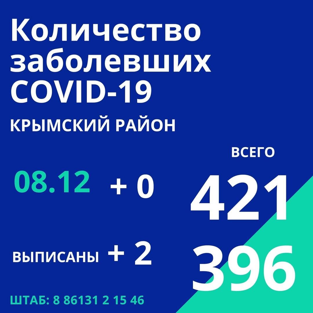 Сегодня по информации оперативного штаба Краснодарского края в Крымском районе нет новых случаев заражения коронавирусной инфекцией. Двое пациентов готовятся к выписке. По официальной статистике - у нас в районе за все время зарегистрирован 421 заболевший.⠀
