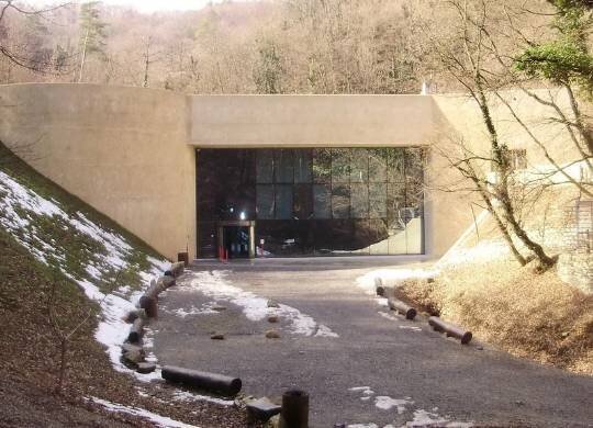 Здание музея располагается недалеко от всемирно известной достопримечательности – жилища пещерного человека. Архитектурная идея строения довольно оригинальна: здание тоже напоминает пещеру, утопленную в холме, а стеклянный фасад, в котором отражается растущий напротив лес усиливает ощущение нереальности происходящего.