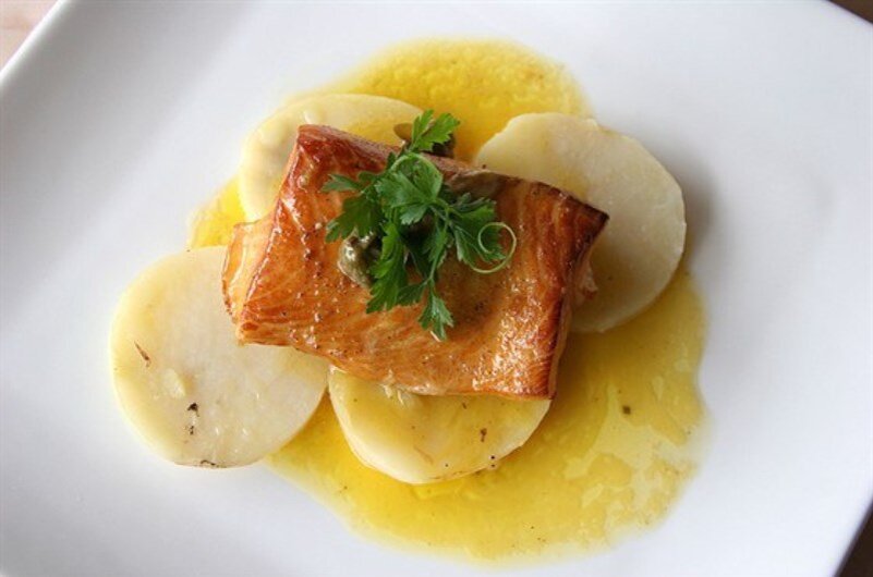 Для этого блюда лучше взять целый кусок рыбы, так её будет проще приготовить.