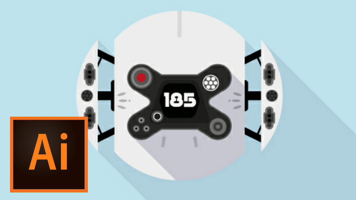 Теперь нужно скруглить два острых угла на морде дрона. Так как у меня CS6 иллюстратор, то я использовал скрипт Round Any Corners. Достаточно выделить любую точку, где нужно скруглить угол, а потом запустить скрипт и задать радиус скругления. Если у вас свеженький Adobe Illustrator CC, то вы можете воспользоваться виджетами Live Corner. Это новые элементы управления, которые появляются в углах фигур при их выделении через Direct Selection Tool (A). Потяните за виджет в сторону и угол станет скругляться.