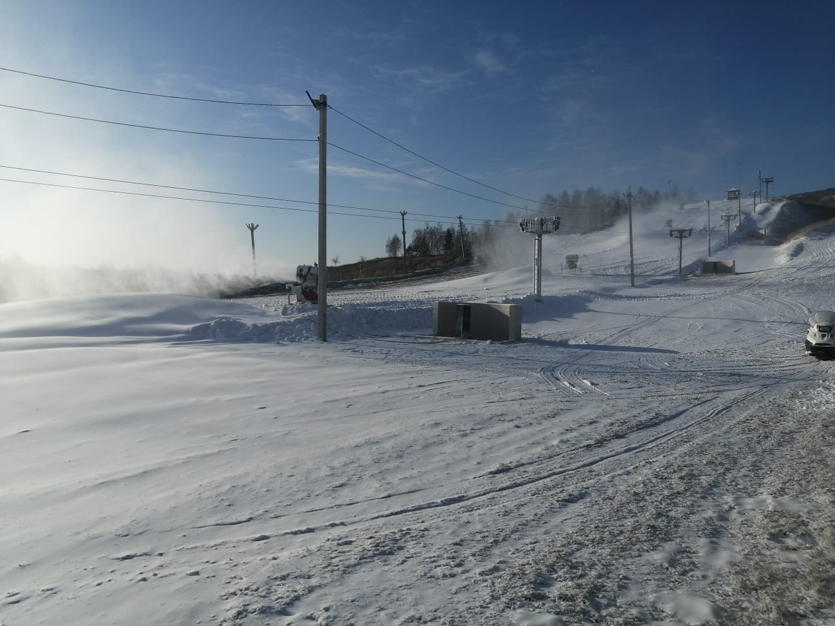 Для этого несколько пушек ранее набрасывали снег. В воскресенье, 22 ноября, снега, расщедрившись, подбросила небесная канцелярия. Однако уже на этой неделе, 23, 24 и 25 ноября, из-за плохих погодных условий склон и трасса закрыты.
